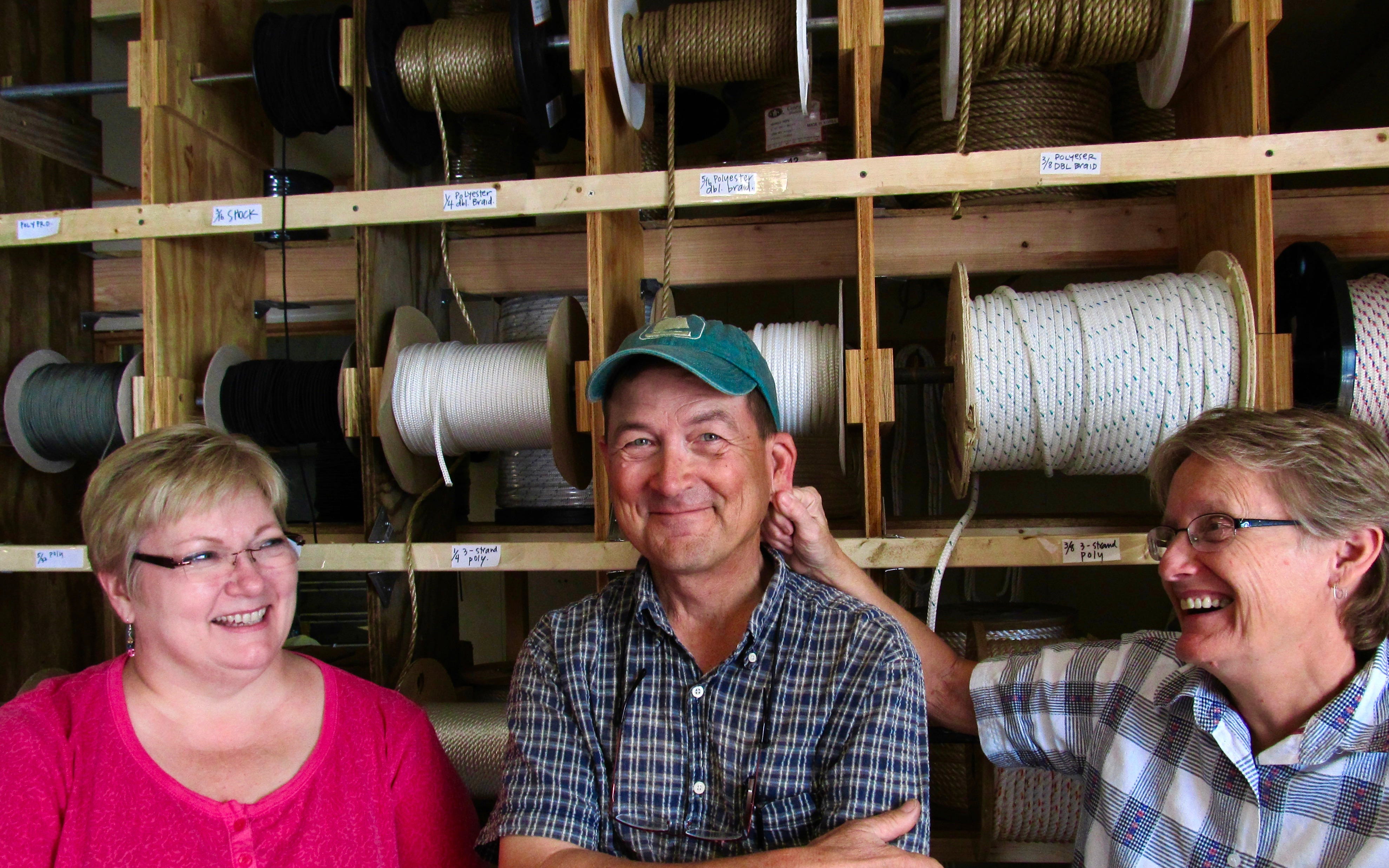 2012: (L to R) Cindy, our first employee, me, and Sandra, in our first real Duckworks warehouse.