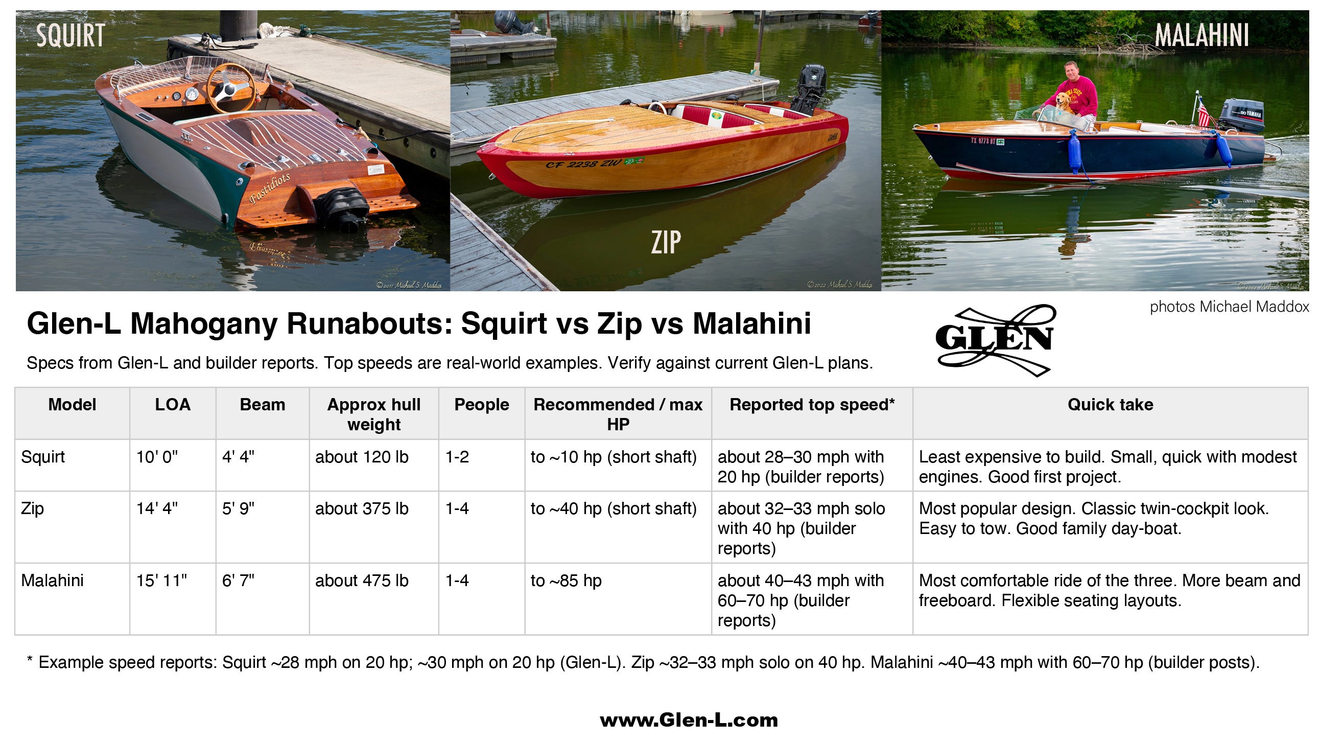 Here’s new comparison chart of three sizes of mahogany runabouts over at Glen-L