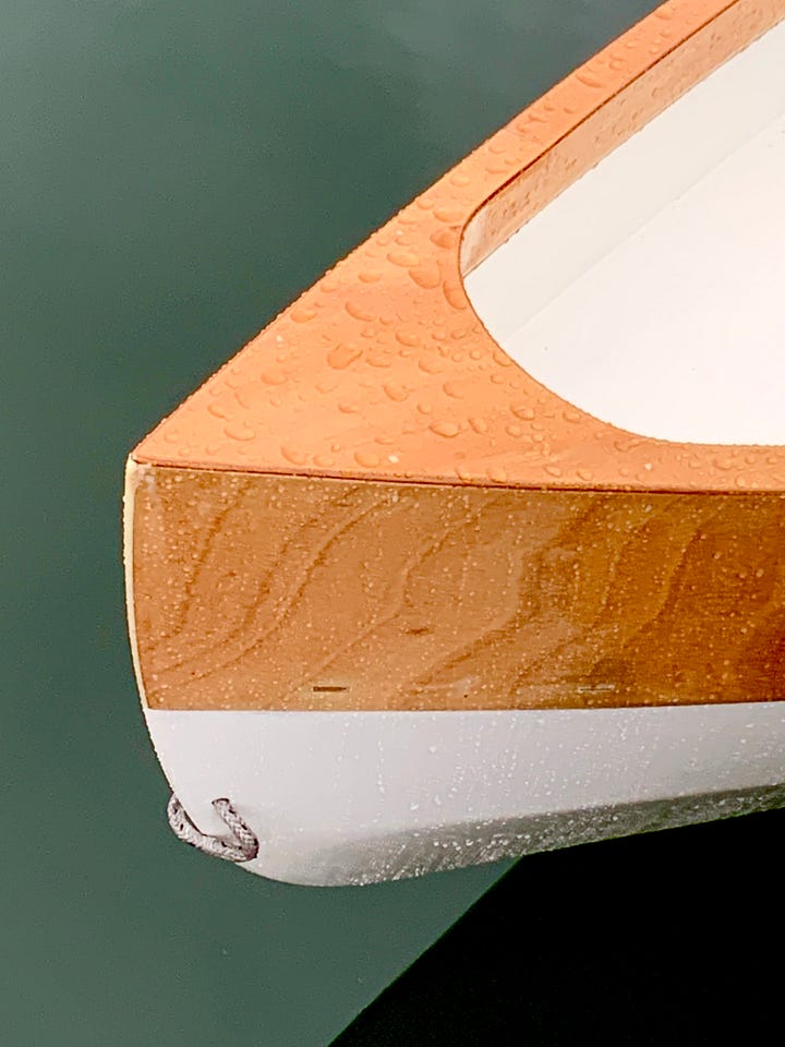 This kit design was the result of a lot of research into the ideal dinghy design—a boat that would be light, strong, capable of carrying three adults (or two with large dog and groceries). And one that would be affordable and easy to build.