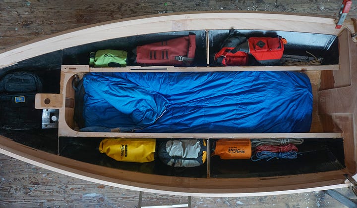 Specs on the Scout 10 and other designs offered by the Kit Boats Co. are on the website linked above, but here are some shots of the boat that does everything well: Row, sail, cruise…with some comfort for minimalist sailors.