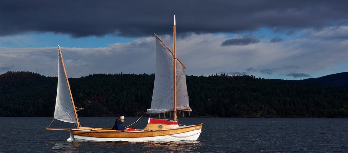 From Mark Baker: This is Lookfar, my John Welsford Longsteps, on a group sail in Cowichan Bay, Vancouver Island. The main sail is reeded because it was a gusty day.