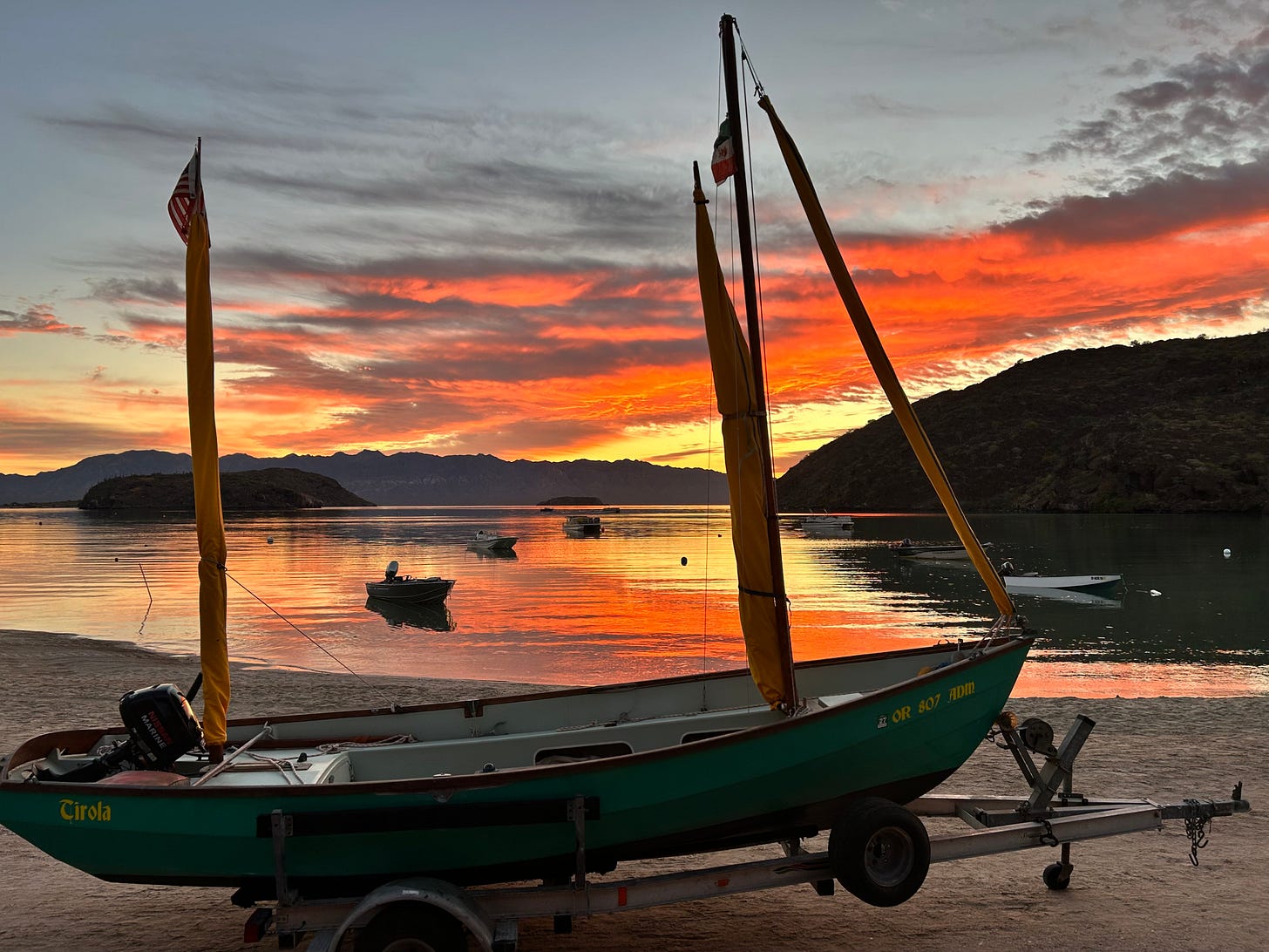 From Franz Eisl: Launching in one hour. Drascombe Lugger Tirola at Bahia Concepcion, Sea of Cortez, Mexico