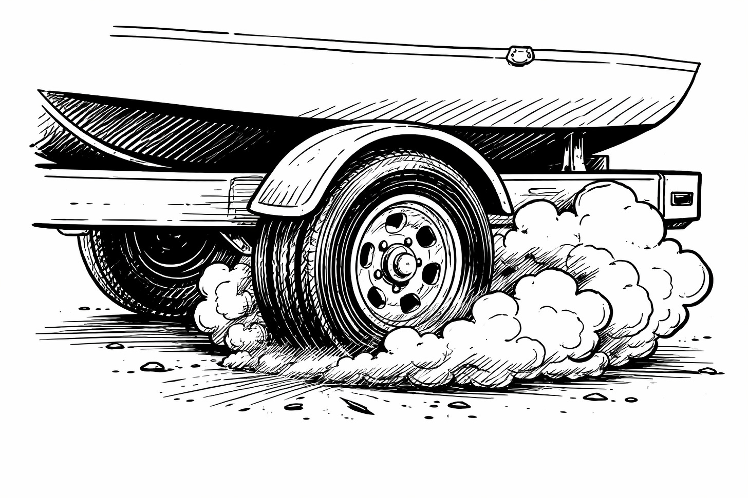 Then we drove on the onramp to the highway and got up to highway speed. The smell was really strong. Suddenly a poof of smoke appeared from the right hand side of the trailer.