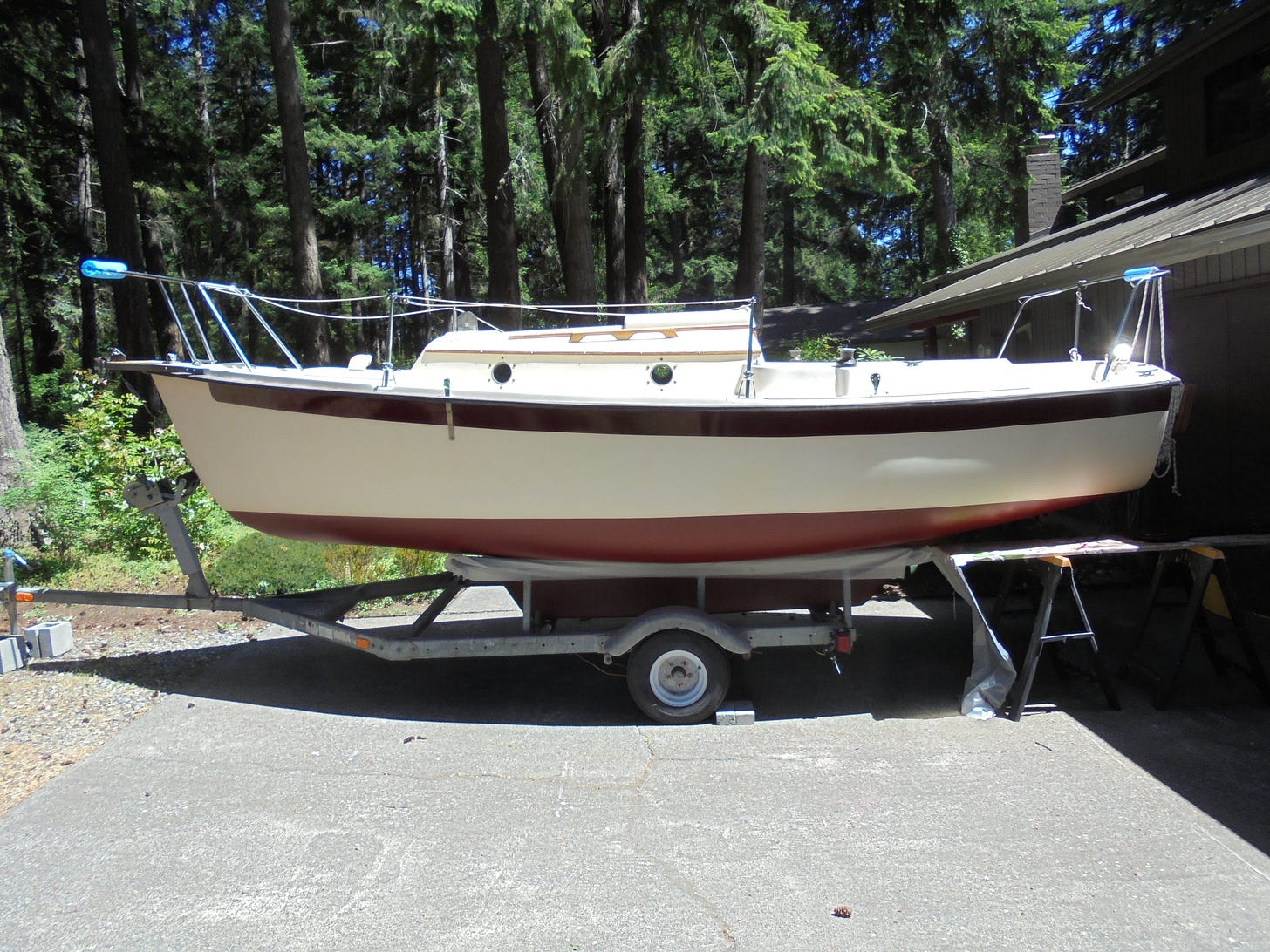 ComPac 19. Rock solid, good-looking, easy for an 84-year-old to handle, moor and maintain solo. Will go anywhere I want to go. Except close to the wind. And perhaps goes a bit slowly … but safely and predictably … she has always gotten me there. True, my wife Beth will only daysail aboard her …. but even a Camano Troll 31 did not suffice for cruising! Flicka headroom would be nice, but I can at least sit up straight below and roll over in the settee/quarterberths. She was easy to convert to a two-berth boat (enough) with a galley and stowage forward, and is super inexpensive to keep, as are all trailer boats.