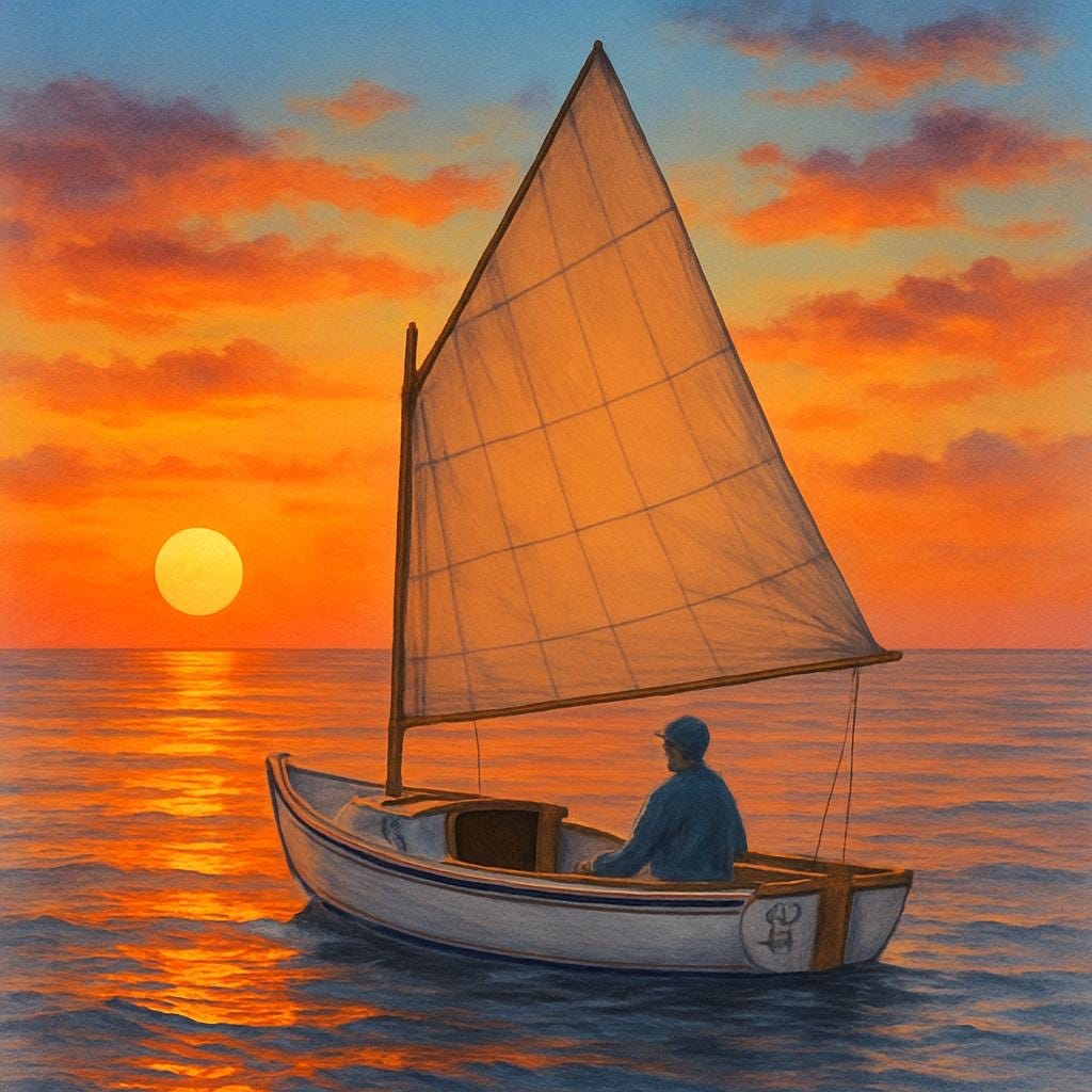 It was late October. The air was beginning to cool. Fall was upon us. It wasn’t certain how many more months of good sailing weather remained. Still, today had been a good day. A brisk east wind for most of the day, tapering as the sun dipped toward the flat horizon.