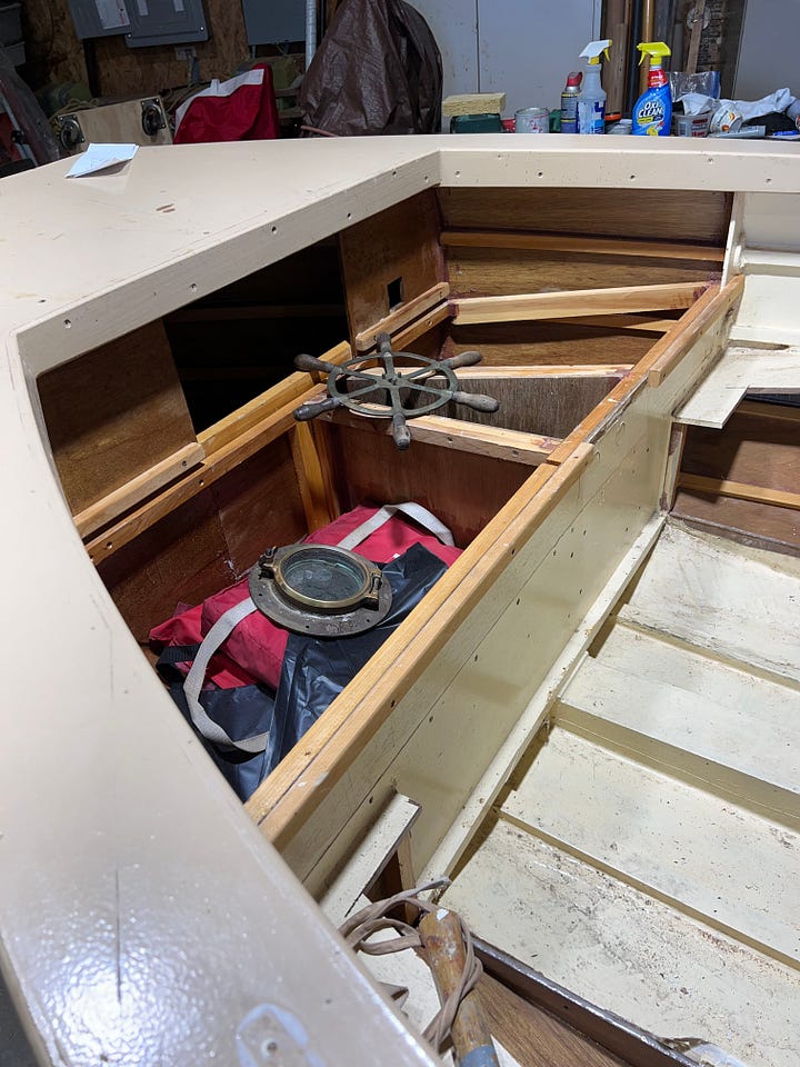 Where did the summer go? And how can it be four long months since we’ve worked on TATOOSH, the 20’ outboard cruiser project we started writing about last November?